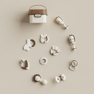 From the first weeks to the first year, our rattle set supports cognitive and motor skill growth, with soft colors, varied textures, and soothing silicone teethers.